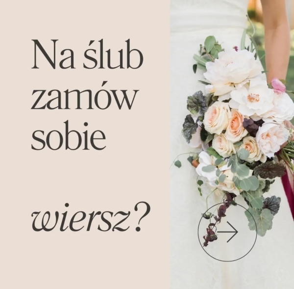 Tworzę wiersze na zamówienie – pełne emocji, dopasowane do okazji i osoby, dla której powstają. Niezależnie, czy potrzebujesz wyjątkowych życzeń, lirycznego podziękowania, czy wiersza na ślub, rocznicę lub inną ważną chwilę – każda strofa jest tworzona indywidualnie, z dbałością o szczegóły i wyjątkowy klimat. Wiersz na miarę to doskonały pomysł na prezent ślubny!