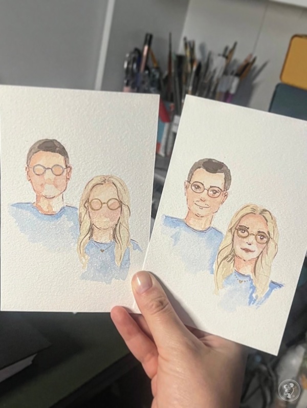 Wyjątkowy prezent dla gości, który powstaje na żywo! Artystka malująca akwarelowe mini-portrety to urocza pamiątka z Waszego wesela i niezapomniana atrakcja. Zaskoczcie swoich bliskich w niezwykły sposób!