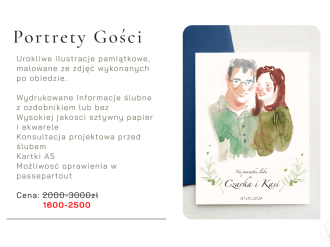 Ilustracje pamiątkowe to unikatowe upominki dla gości weselnych, stanowiący również dodatkową atrakcje na przyjęciu. To wyjątkowa usługa, która sprawi, że wasi goście na długo zapamiętają wasz niezwykły dzień. 🪄