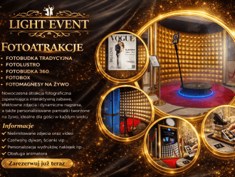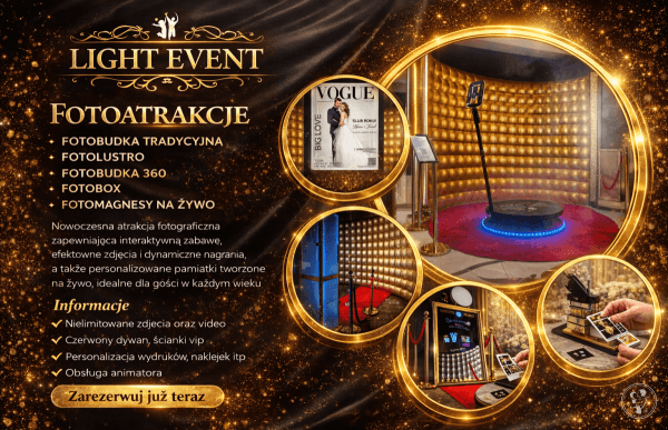Z nami goście się nie nudzą ! Posiadamy takie atrakcje jak: ✔️Fotobudka ✔️Fotobudka 360 ✔️Fotolustro✔️Fotobox ✔️Mirrorbox✔️Cięzki dym ✔️Fontanny sceniczne ✔️Wytsrzałowy dym ✔️Pirobanery ✔️Telefon życzeń ✔️Napisy dekoracyjne ✔️Dokaracja sali światłem✔️Wiatraki iskier ✔️ Wodospad Iskier