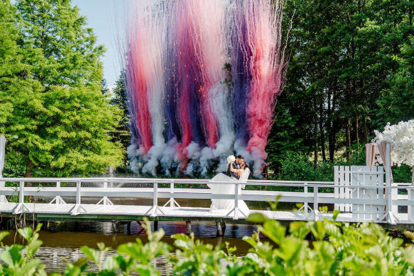 Pirotechnika dzienna, zwłaszcza kolorowe miny dymne, to świetny sposób na dodanie wyjątkowego charakteru zdjęciom weselnym. Intensywne barwy i efektowne wystrzały stworzą dynamiczne, energetyczne tło, które świetnie pasuje do kreatywnych sesji fotograficznych. Profesjonalny pokaz pirotechniczny sprawi, że Wasze zdjęcia będą pełne życia, a wesele niezapomniane. To inwestycja w wyjątkowe wspomnienia