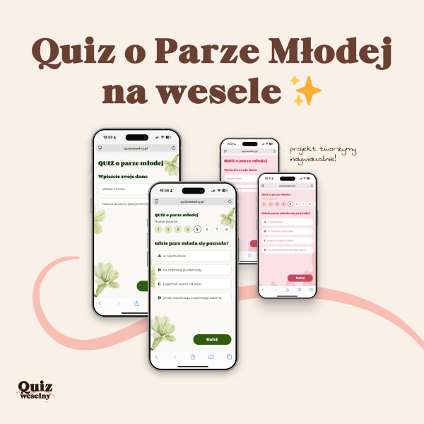 Zaskocz gości atrakcją, która wciąga bez przerywania wesela! Quiz Weselny to personalizowana gra o Was – rozwiązywana na telefonie, w dowolnym momencie. Ozdobne winietki z kodem QR trafiają na stoły, a wyniki ogłasza DJ lub para młoda. Efekt? Śmiech, emocje i świetny sposób na zintegrowanie gości.