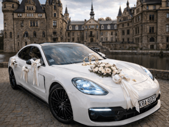 Porsche Panamera na ślub – luksus, który widać i słychać Wyjątkowa Panamera 2023 z rasowym V6 (330 KM) i ekskluzywną skórą Marsalot mieniącą się bordowym odcieniem w słońcu. Przestronne wnętrze, panoramiczny dach, perfekcyjny komfort dla Młodej Pary. Auto zawsze czyste, pachnące i przygotowane na ten jeden, wyjątkowy przejazd....