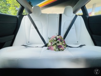 Posiadamy w pełni białą Teslę Model 3 z napędem elektrycznym, która niewątpliwie zrobi wrażenie podczas Waszej uroczystości. To wyjątkowe auto można wynająć do ślubu, na imprezy okolicznościowe, firmowe, a także sesje zdjęciowe!