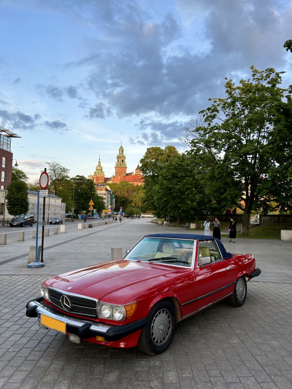 Oferuję wynajem zjawiskowego Mercedesa SL560 z 1986r. w czerwonym kolorze, na wesela, imprezy i sesje fotograficzne (Kraków i okolice). Silnik 5.6L V8, automatyczna skrzynia biegów, klimatyzacja. W razie...