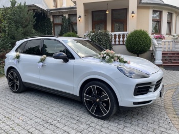 Chciałbym zaoferować Państwu przepiękne Porsche Cayenne wraz z kierowcą, który zapewni bezpieczny i komfortowy przejazd w tym wyjątkowym dniu. Samochód w pięknym białym kolorze, wnętrze czarne, fotele wersji sportowej GTS, to wszystko zapewni poczucie elegancji i niesamowite wrażenia podczas jazdy. Usługa to wynajęcie samochodu wraz z kierowcą na 4 godziny.