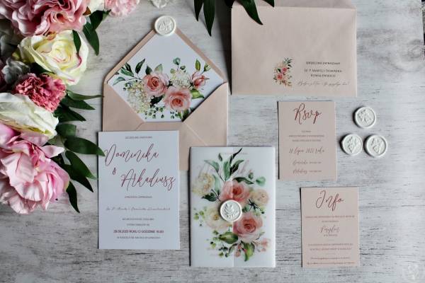 Zaproszenia są przepiękne, skromne lecz mają swój urok. Wykonane doskonale, każdy szczegół bardzo dobrze doprecyzowany. Kontakt z Firmą bez zarzutu. Odpowiadają na każde, nawet te najbardziej oczywiste pytania.