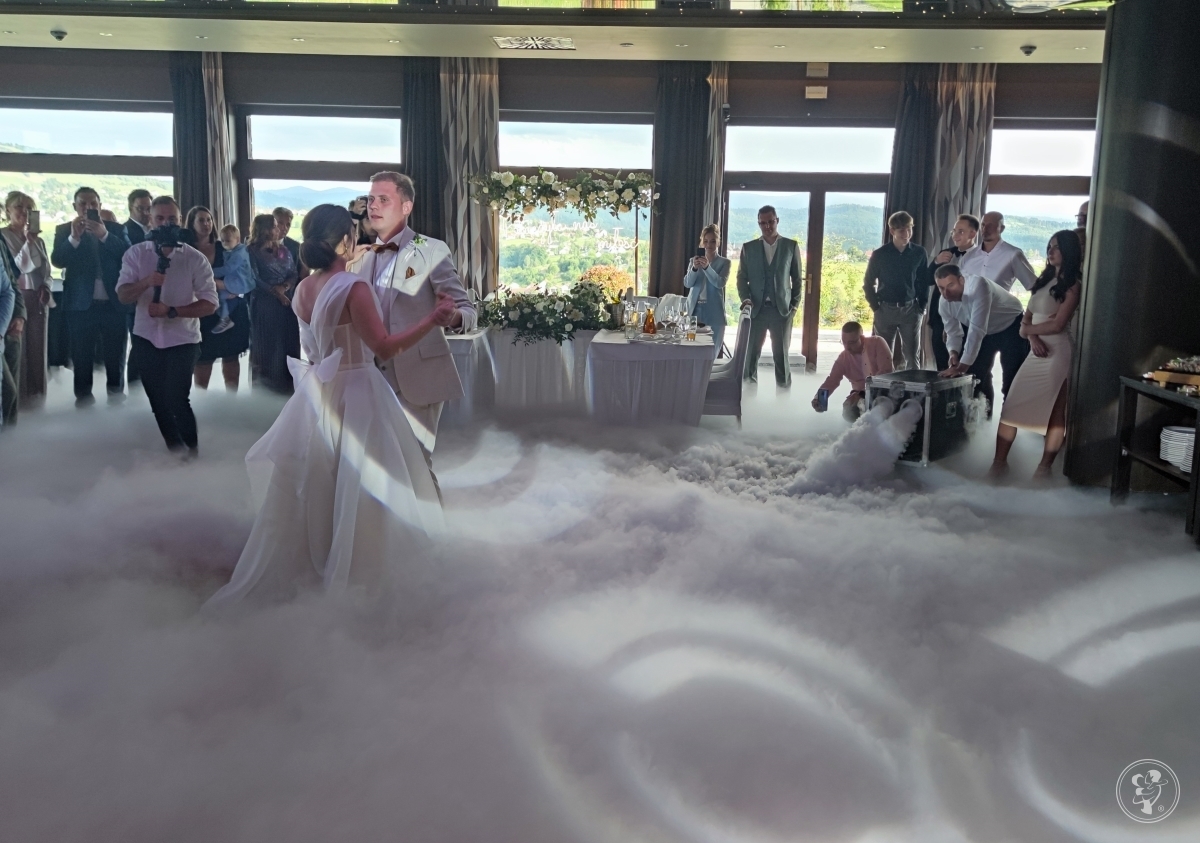 Taniec w chmurach? Ten efekt można uzyskać za sprawą ciężkiego dymu, który unosi się przy samej podłodze. Bez względu na zmieniające się trendy weselne, ten element zawsze robi wrażenie.