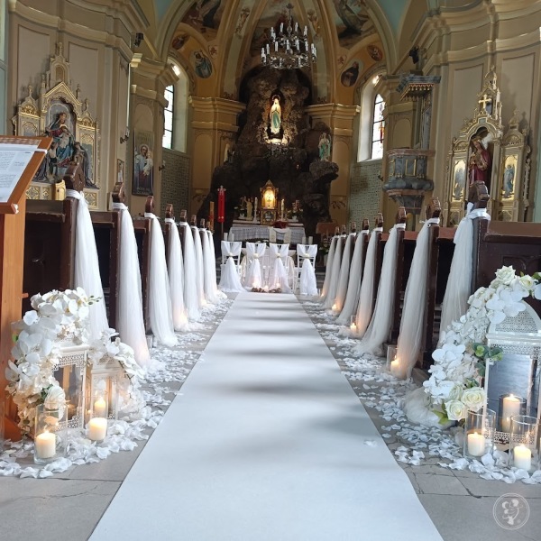 Oferujemy Państwu dekorację kościoła, bukiety ślubne, dekorację samochodów, kosze kwiatowe, płatki do sypania - zarówno żywe jak i sztuczne.