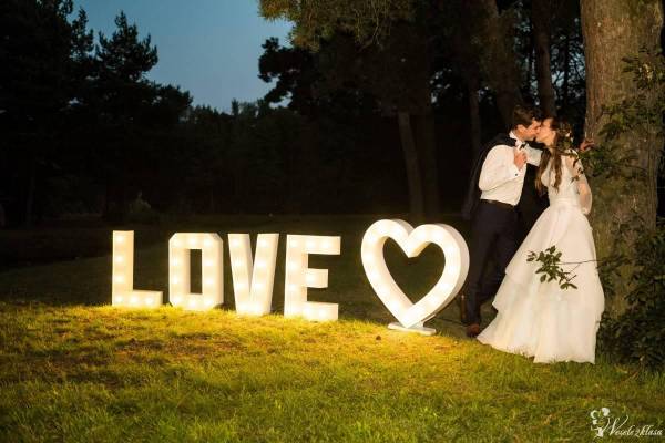 Posiadamy również podświetlany napis LOVE wraz z serduszkiem, który jest wyjątkowym tłem dla pamiątkowych fotografii.
