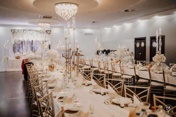Wystrój naszego lokalu oparty jest na jasnych, bardzo eleganckich i przestronnych wnętrzach, które dzięki swojej uniwersalności przypadną do gustu nawet najbardziej wymagającym gościom. Stylowe wnętrza naszej sali są idealne dla miłośników wystroju glamour, w którym królują piękne, kryształowe detale i dekoracje w odcieniach złota i srebra. Dla naszych Gości mamy do dyspozycji stoły okrągłe, jak i w tradycyjnym ułożeniu. Sala jest bardzo przestronna i jasna, z sali jest możliwość wyjścia na zadaszone patio ze strefą wypoczynkową, gdzie w otoczeniu zieleni można odpocząć na świeżym powietrzu.