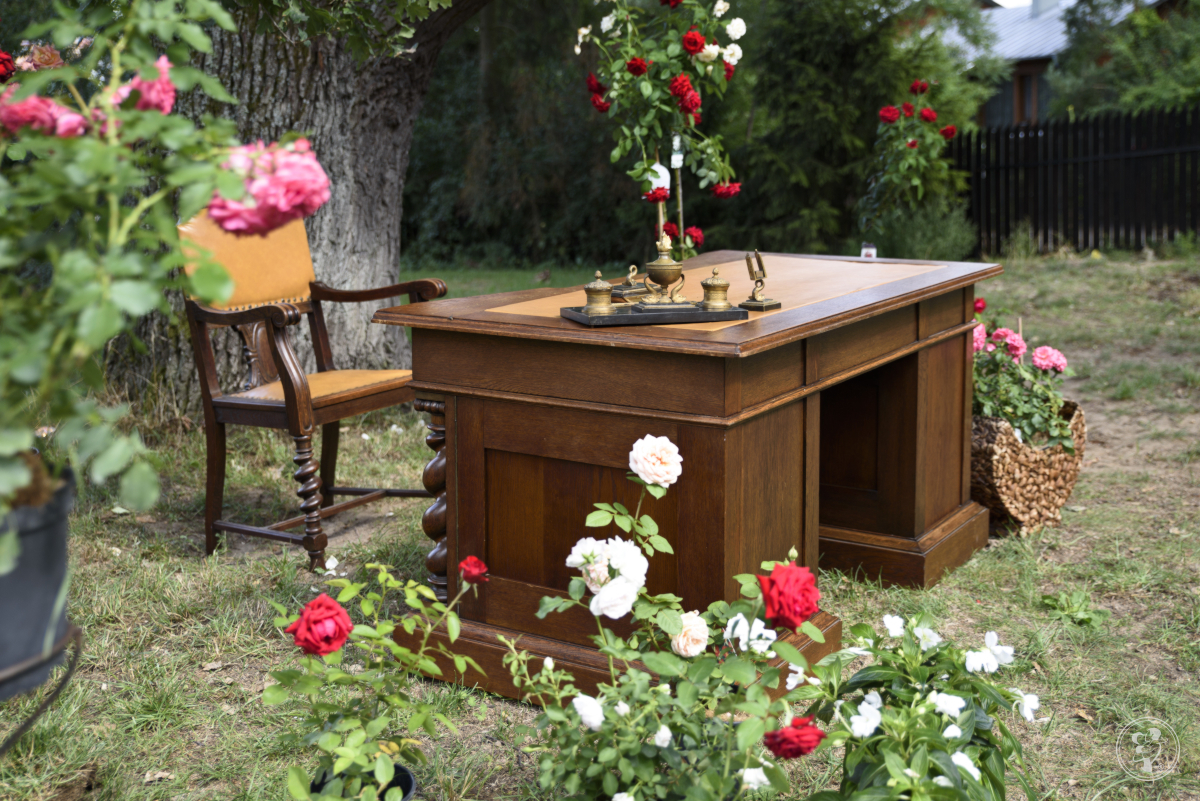 Piękny, rozległy ogród z wyjściem na basen, idealny na plenerowe ceremonie i sesje zdjęciowe