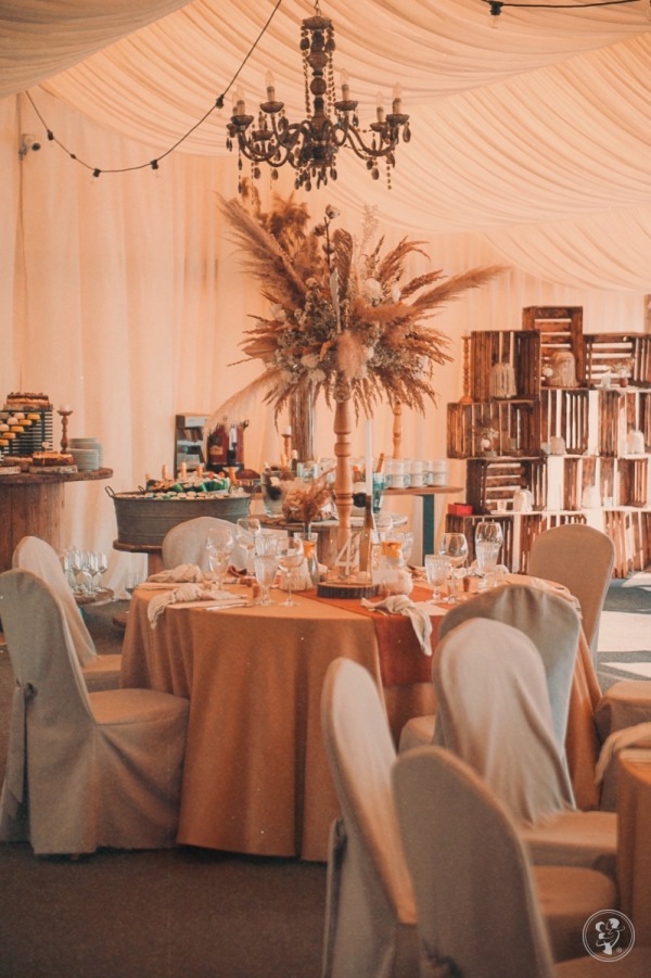 Nasz namiot weselny to idealne miejsce dla Par Młodych marzących o romantycznym, naturalnym i eleganckim weselu w malowniczej scenerii. Wystrój łączy w sobie styl boho i rustykalny, tworząc lekką, harmonijną przestrzeń pełną uroku.