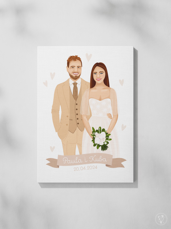 Usługa stworzenia portretu pary młodej jako podziękowanie w dniu ślubu przerosła nasze oczekiwania! Portret był wykonany z niesamowitą precyzją i dbałością o każdy detal – od ubrań po wyraz twarzy, co sprawiło, że prezent miał niezwykły, osobisty charakter. Obdarowani byli wzruszeni i zaskoczeni takim wyjątkowym podarunkiem. To piękna, sentymentalna pamiątka, która z pewnością będzie przypominać o tym wyjątkowym dniu przez wiele lat. Indywidualne podejście do projektu i możliwość pełnej personalizacji to ogromny atut. Gorąco polecamy!