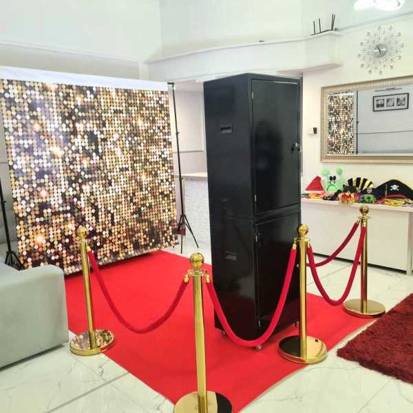 ✔ Zadbamy o wygląd otoczenia Fotobudki - czerwony/czarny dywan, eleganckie słupki odgradzające