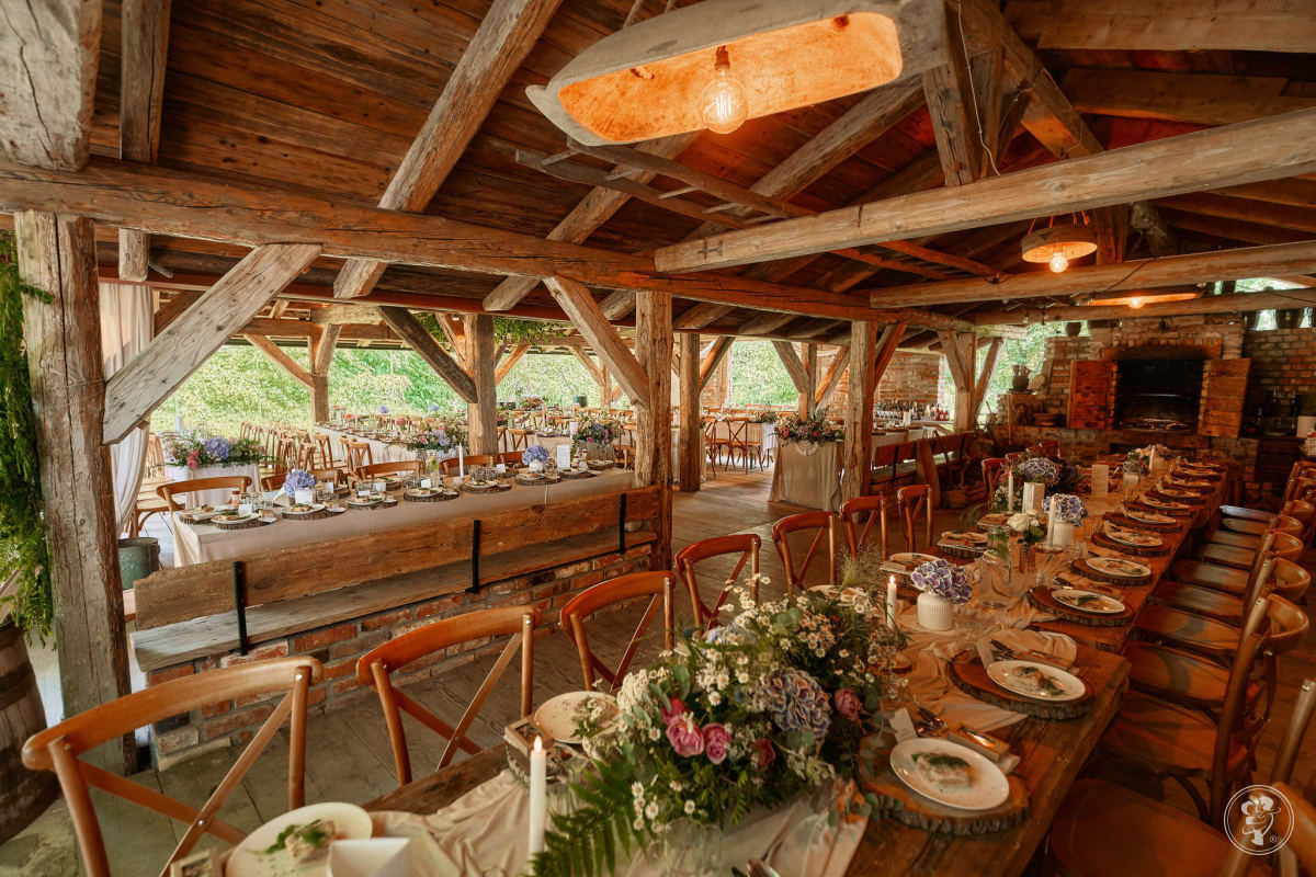 Najczęściej organizujemy wesela w stylu rustykalnym, folkowym oraz boho. Stare bale, deski, cegły dachówki dają niepowtarzalny klimat miejsca.