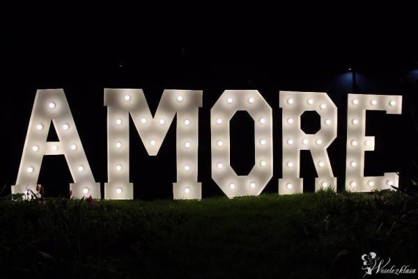 W tym sezonie ślubnym bardzo modne jest dekorowanie świtałem. Rewelacyjnie w tej roli sprawdzi się piękny napis AMORE o wysokości 120 cm.