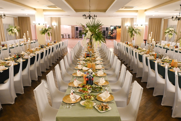 Do dyspozycji oddajemy dwie klimatyzowane sale bankietowe, pozwalające na organizację uroczystości nawet do 250 osób. Jasna, ciepła kolorystyka dominująca we wnętrzach, piękne dekoracje, a także dogodne wyjście do restauracyjnego ogrodu tworzą doskonałą przestrzeń do zaplanowania niezapomnianych przyjęć i bankietów.