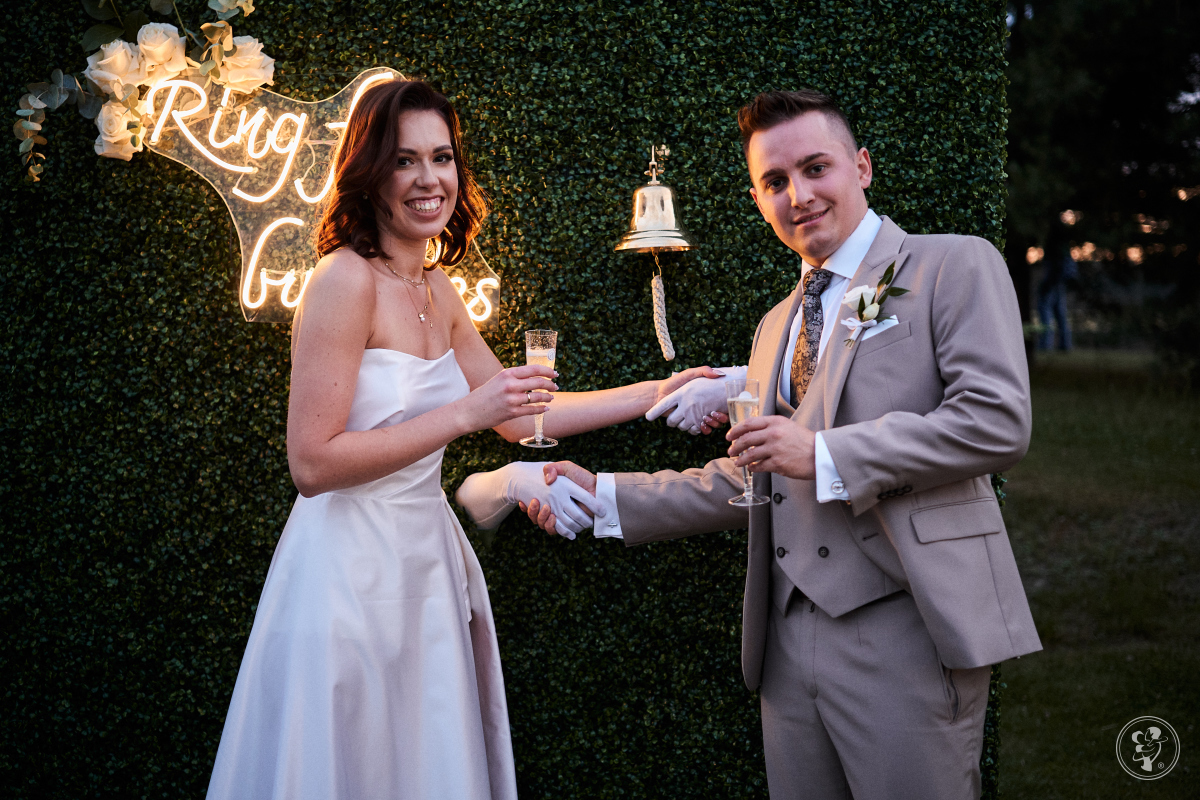 Goście podchodzą do ścianki i dzwonią dzwonkiem. W losowych miejscach pojawia się ręka z kieliszkiem zimnego wina musującego, co zaskakuje i cieszy wszystkich obecnych.