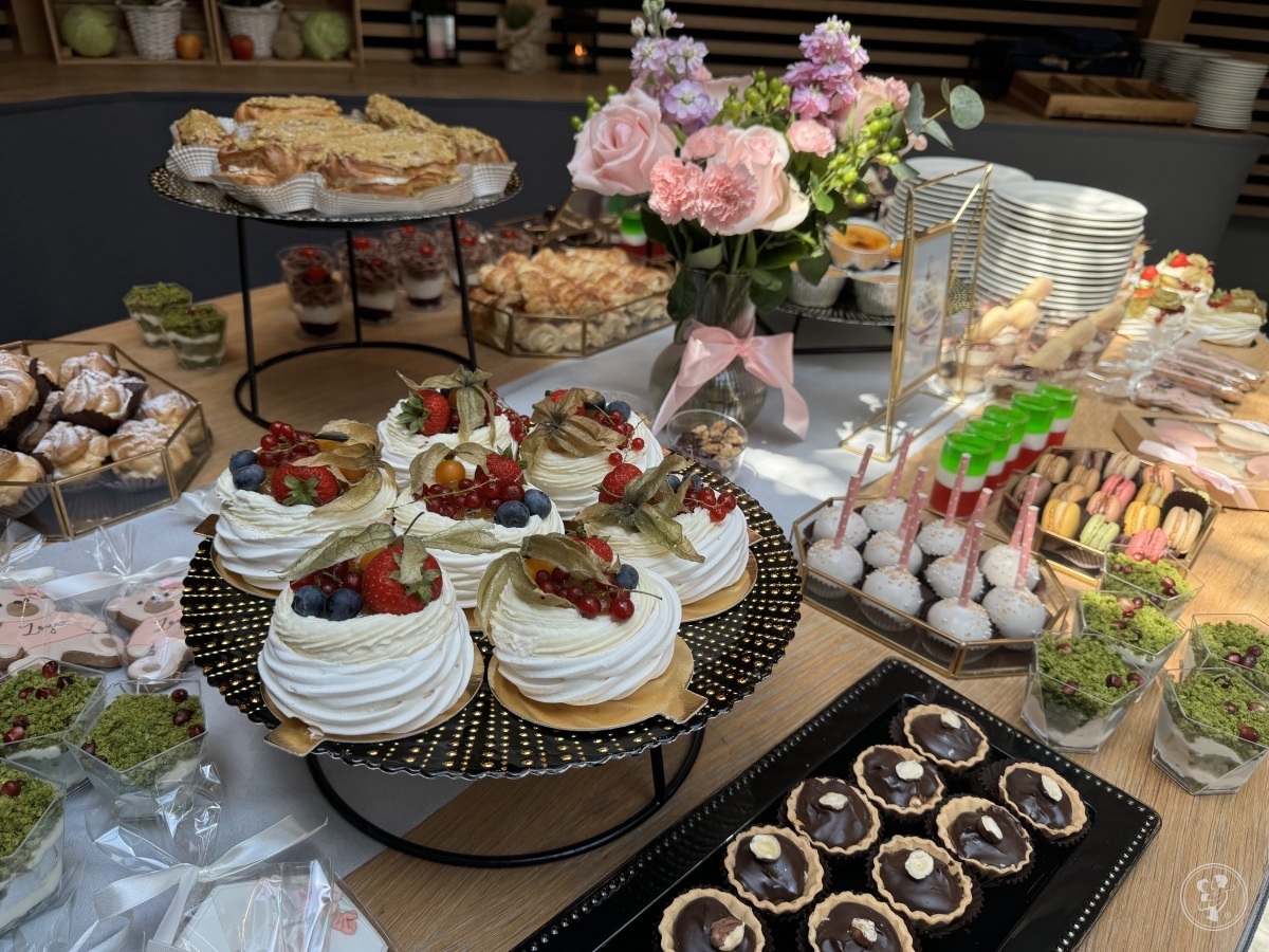 Jestem bardzo wdzięczna Pani Dorocie za przygotowanie słodkiego stołu na nasze wesele. Stół prezentował się pięknie, a smakował jeszcze lepiej. Nasze ulubione słodkości to Beza Pavlowa z Marakują, tarta cytrynowa, tarta z owocami, rurki z kremem, Malinowa Chmurka, Zielony Mech, Ciasto Marchewkowe. Wszystkie pozycje wybitne, w ofercie były i klasyczne bankietowe ciasta, i bardziej nietypowe rzeczy jak eklery z pistacjami czy makaroniki, każdy mógł znaleźć coś dla siebie :) Pani Dorota jest bardzo kontaktowa, serdeczna, szczegóły udało nam się bez problemu dogadać mailowo.