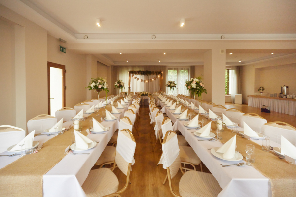 Willa Maciejka oferuje elegancką klimatyzowaną salę bankietową, w której zorganizujecie uroczystość w ciepłej i rodzinnej atmosferze. Nasza sala weselna jest nowocześnie urządzona. Neutralna i jasna kolorystyka wnętrz pozwala na dowolną aranżację wesela. Zrealizujecie zatem przyjęcie w wymarzonym kolorze przewodnim i stylu weselnym, od stylu glamour po rustykalny. Posiadamy stoły prostokątne na wesele, które zostaną rozmieszczone zgodnie z Waszym życzeniem.