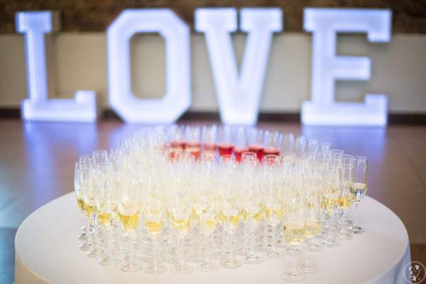 Napis LOVE składa się z czterech śnieżno białych liter o wimiarach 95cm x 129cm x 28cm, szerokość całkowita napisu to 6m. Litery są solidne i trwałe, wykonane z płyt MDF oraz zabezpieczone zmywalną farbą, a na ich spodzie umieszczona jest blacha, która zapobiega obijaniu dolnych krawędzi oraz ułatwia przestawianie. Oświetlenie napisu wykonane zostało technologią ledową RGB, co umożliwia zapalenie dowolnego koloru, zmiany barwy czy automatycznego przełączania między trybami świecenia za pomocą pilota. Wymienione funkcje pozwalają dostosować oświetlenie do wnętrza oraz wspomagają pracę fotografa, kamerzysty i DJ'a.