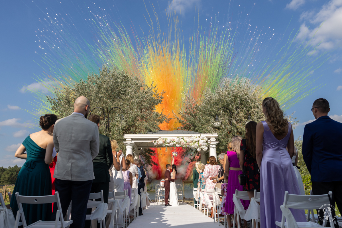 Już po pierwszej rozmowie z Bartkiem wiedzieliśmy, że trafiliśmy w dobre ręce. Wszystkie ustalenia zrobiliśmy przed weselem więc byliśmy spokojni o uchwycenie wszystkich ważnych dla nas momentów podczas ceremonii zaślubin plenerowych, a także zaraz po nich (wystrzały min dymnych). Podczas wesla Bartek wraz z kamerzystaą byli wszędzie w dobrym tego słowa znaczeniu. Życzenia gości, emocje i wzruszenia, pierwszy taniec oraz cała zabawa zostały uwiecznione. Dodatkowo wykonaliśmy serię zdjęć grupowych oraz w parach z gośćmi, co uważamy za super pamiątkę. Nie możemy zapomnieć również o wszystkich pomysłach na zdjęcia oraz podpowiedziach jak mamy się ustawiać. Wykonaliśmy nawet zdjęcia w stylu tych, które prędzej widziałam na instagramie. Bartek odpowiedział na moje pomysły tylko tyle: "jasne, robimy, chodźcie".